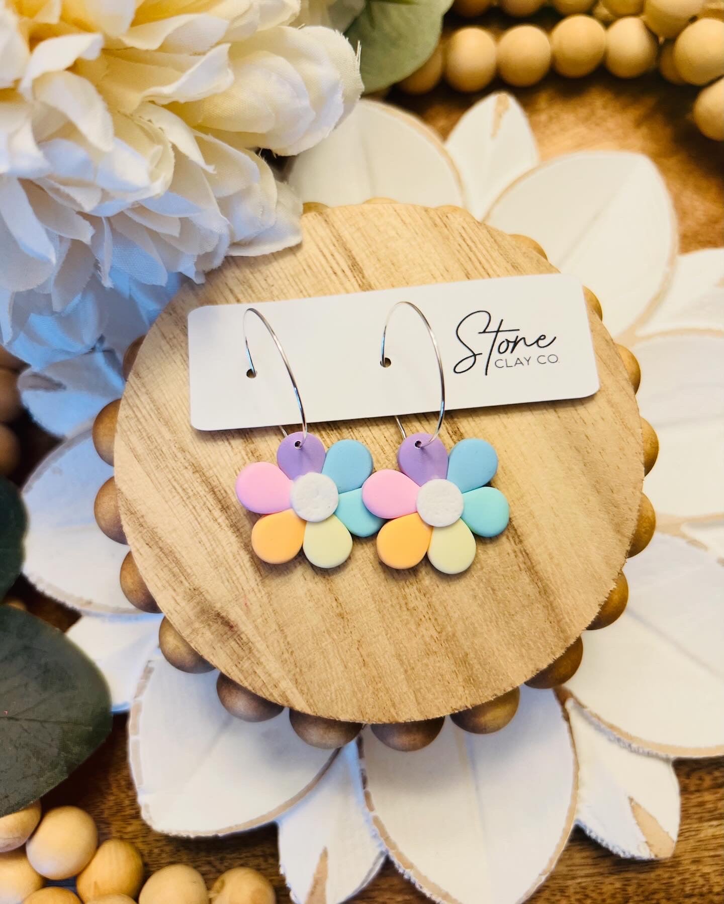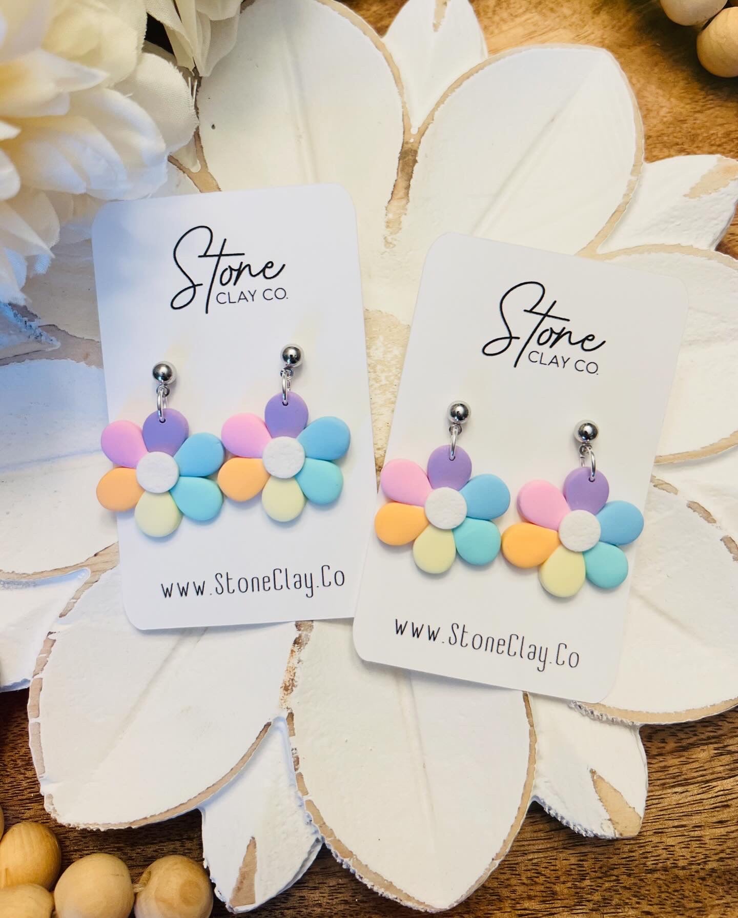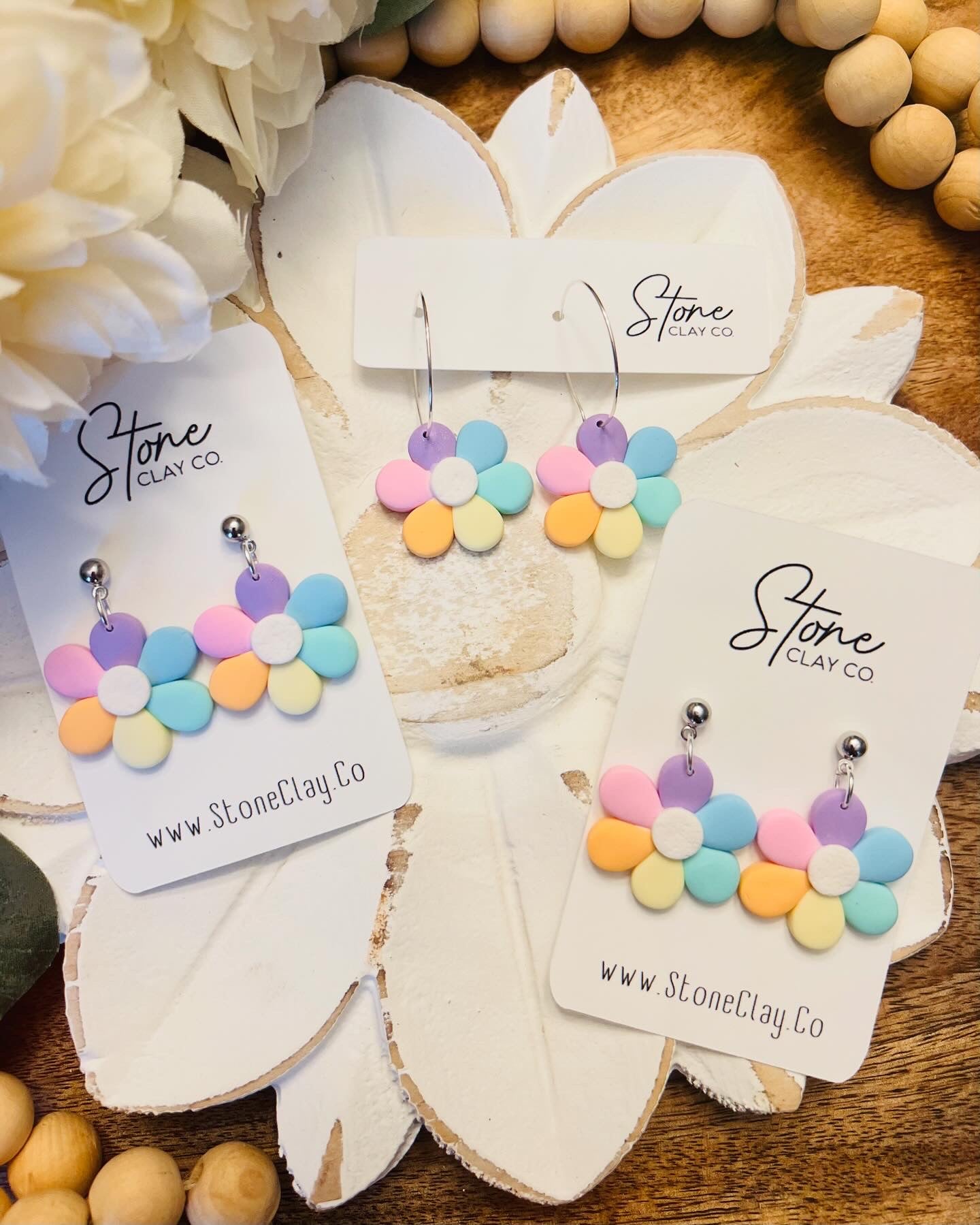 ♡ Lightweight, polymer clay earrings in a pastel flower dangle.