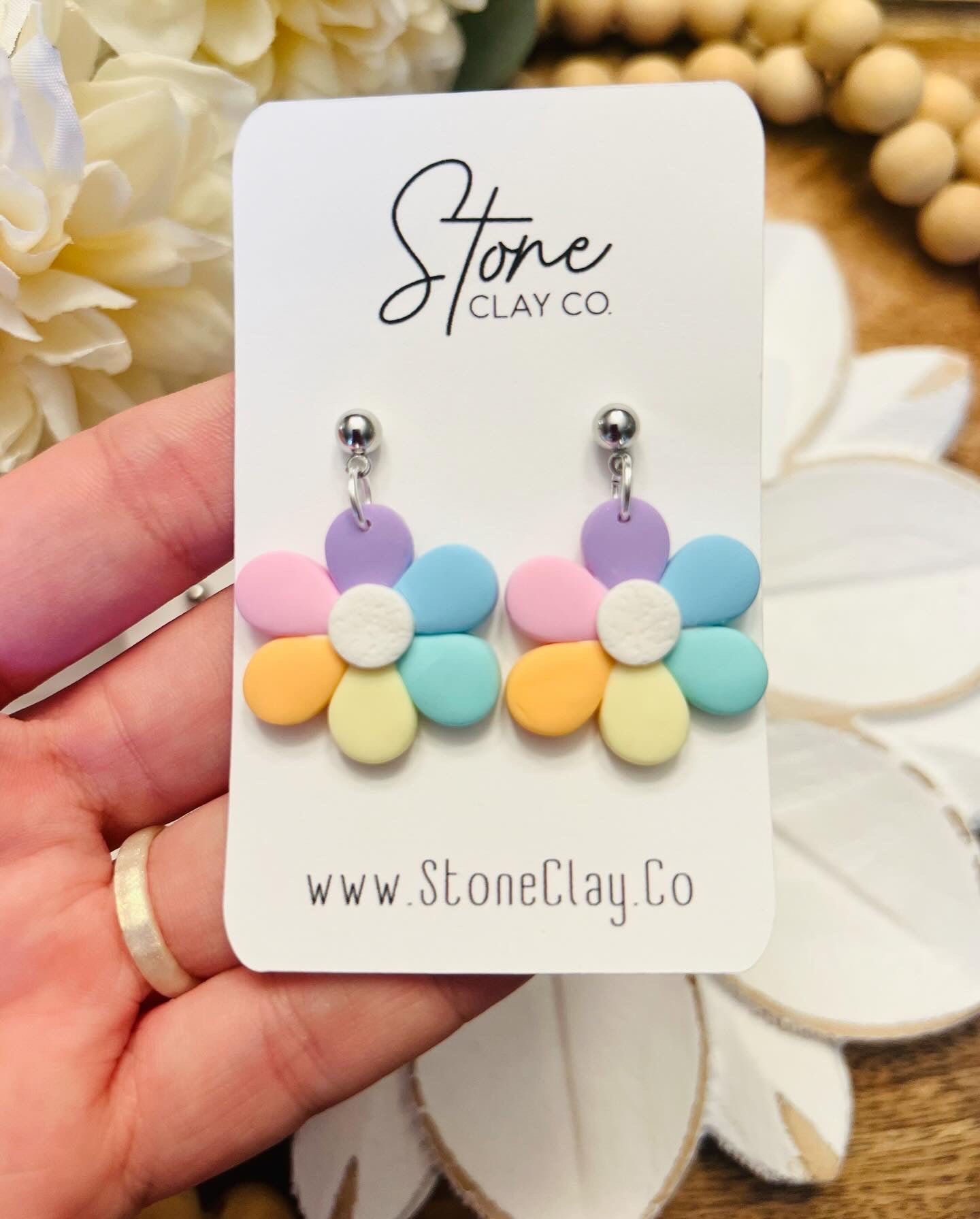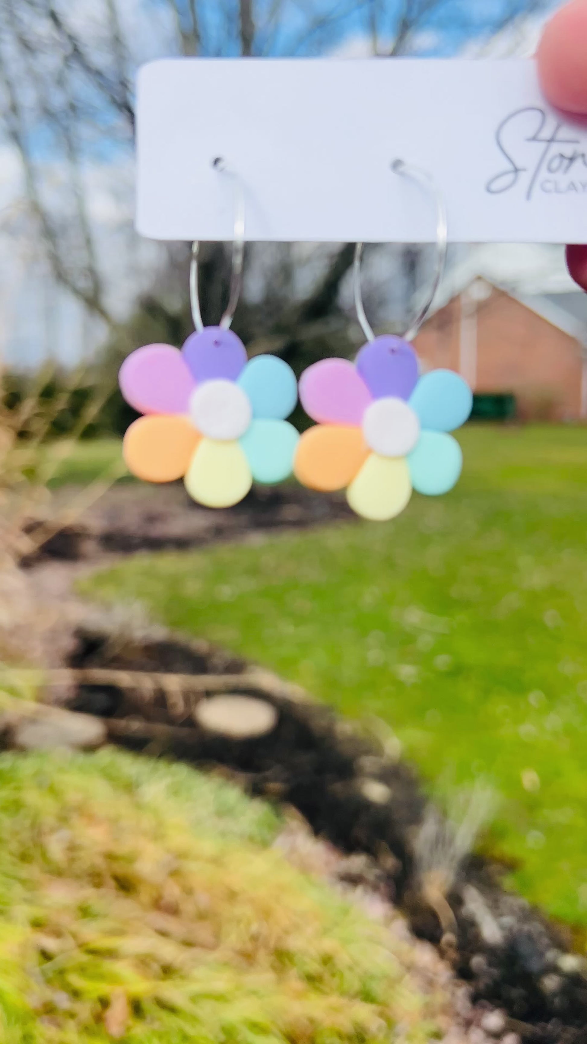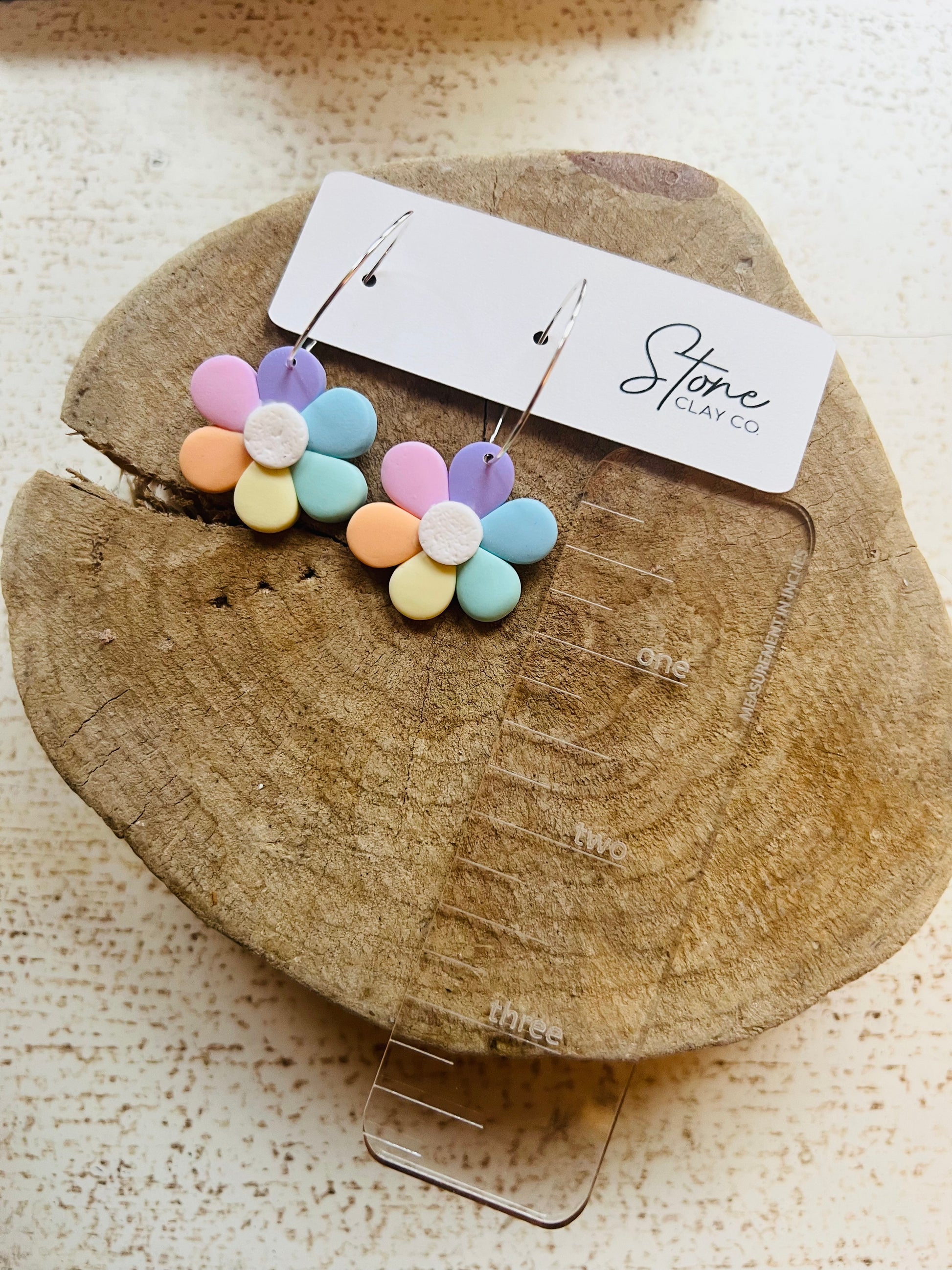 ♡ Lightweight, polymer clay earrings in a pastel flower dangle.