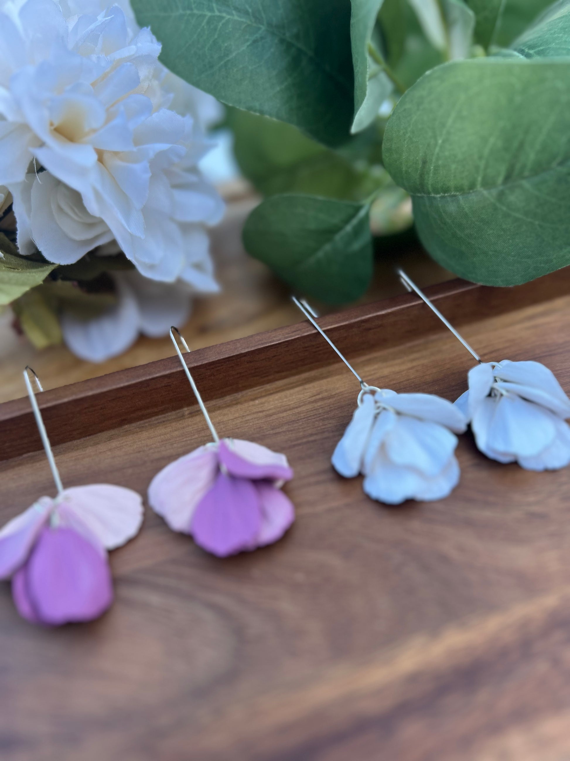 ♡ Lightweight, polymer clay earrings handcrafted into a petal dangle, available in 2 different colors - pink ombre / white. Also, available in gold/silver earring hook.