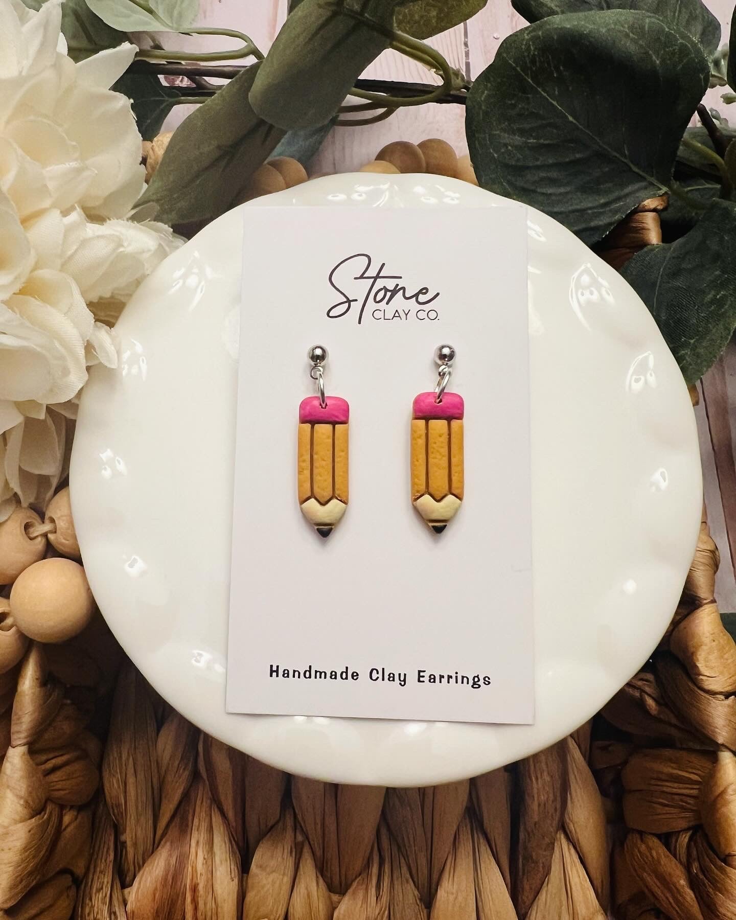 ♡ Lightweight, polymer clay earrings in a collection of Teacher / pencil earrings.