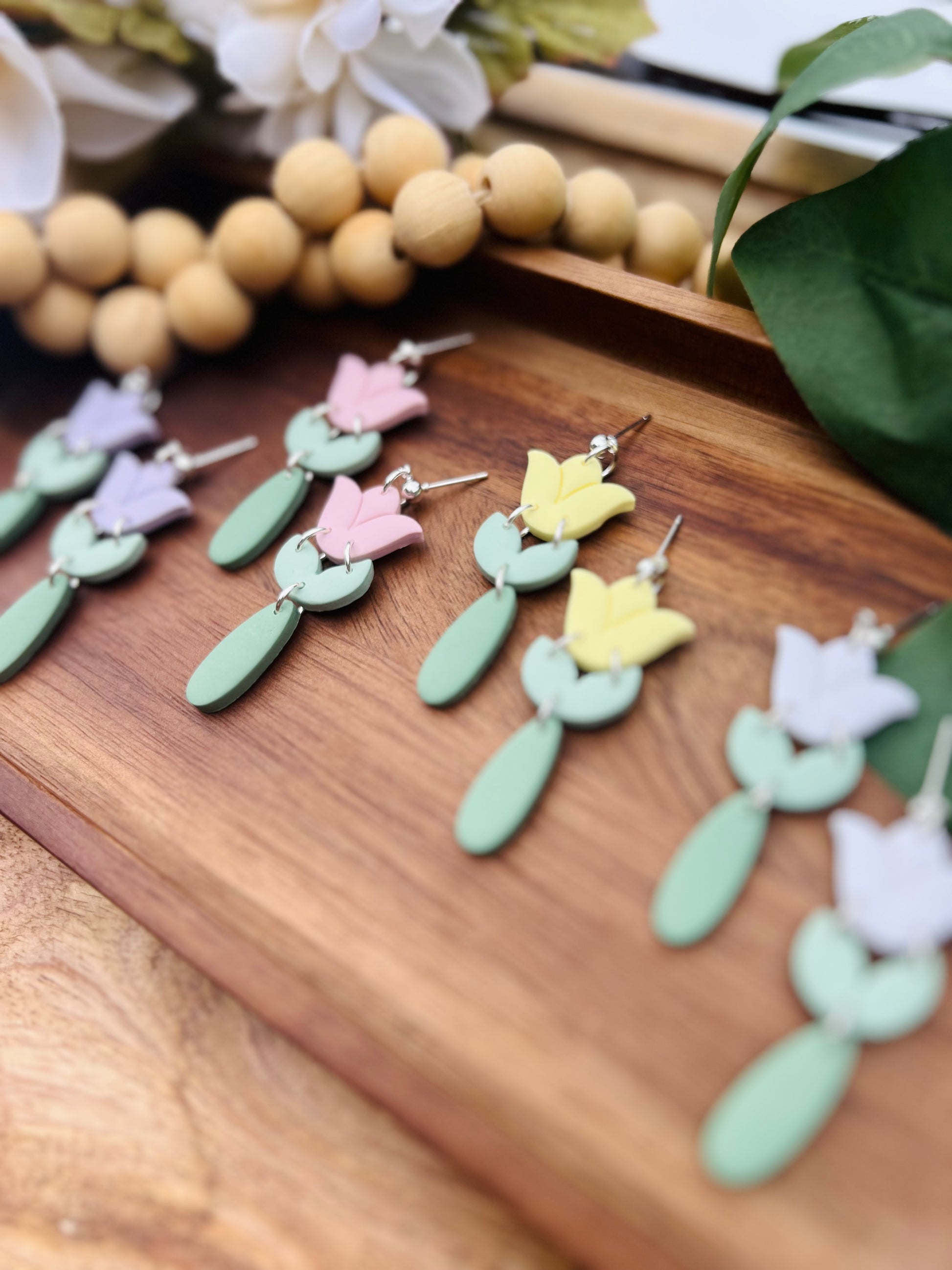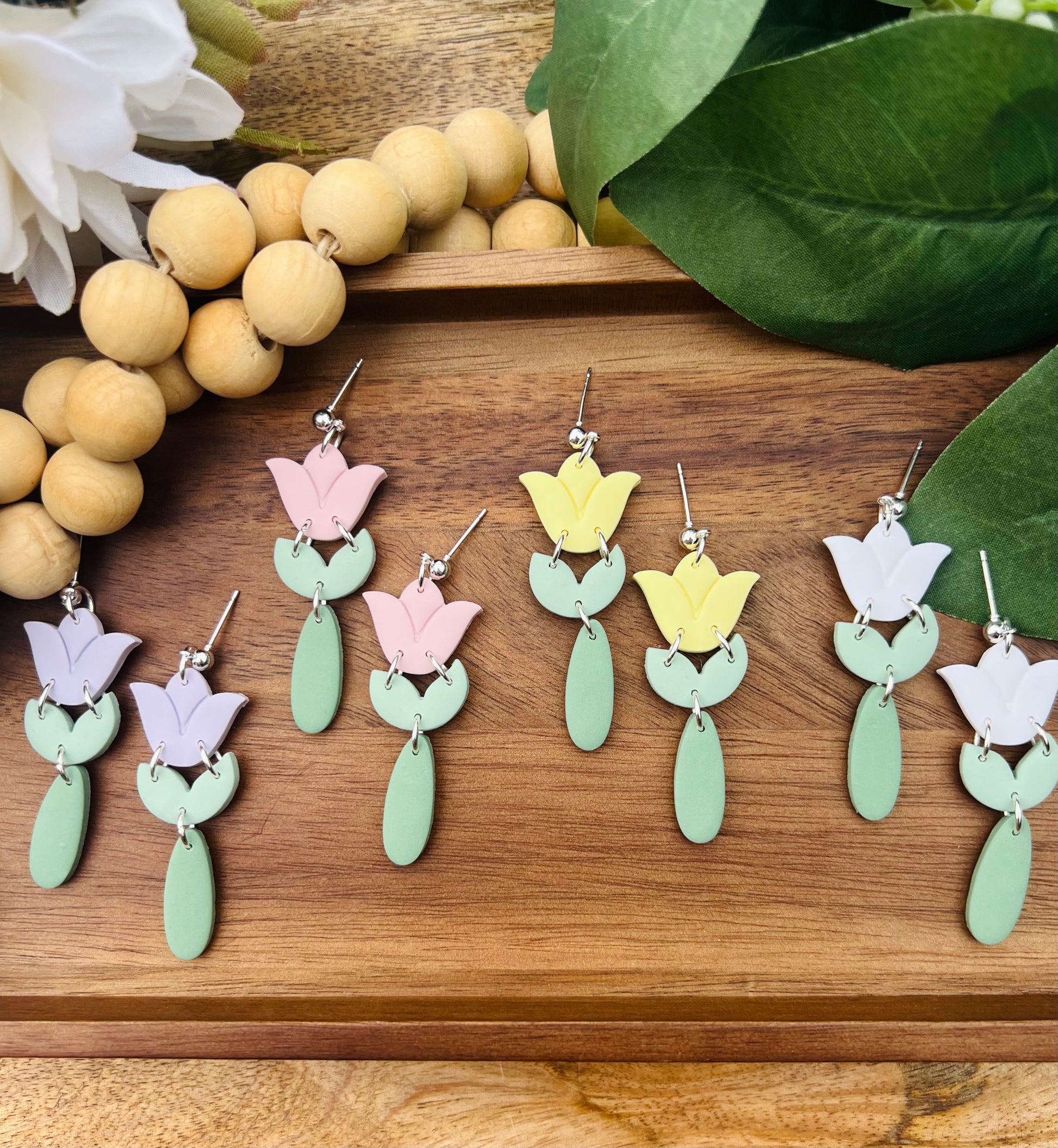 ♡ Lightweight, polymer clay earrings in a tulip dangle, available in 4 different colors.